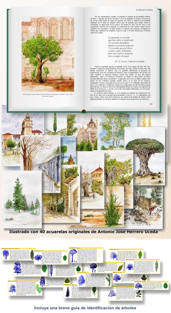 Esta nueva edición ampliada lleva el subtítulo de más árboles, más alma. Se incluyen nuevos capítulos dedicados a árboles tan significativos como las hayas y los tejos, tan singulares como el drago y tan afincados en la cultura popular como el enebro y la sabina. Por otro lado, los árboles que ya estaban plantados en el libro han crecido, como propios seres vivos, les han salido nuevas ramas que se han visto enriquecidas con nuevas acuarelas y más evocadoras imágenes poéticas. Para conseguir un desarrollo armónico, cada capítulo ha seguido aumentando sus propias raíces en busca de mayores y más profundas relaciones entre el árbol, el paisaje y el hombre. Comentando con los lectores, se ha creído conveniente incluir una guía concisa para identificar los árboles tratados. Es lamentable que cualquier habitante de nuestras ciudades pueda distinguir y reconocer muchos modelos de coches distintos y en cambio tenga serias dificultades si desea nombrar los árboles más comunes. Esta estremecedora realidad debería hacer reflexionar sobre los planes educativos y retomar las ideas de Francisco Giner de los Ríos que incluía el amor a la Naturaleza y al paisaje como base de su sistema de enseñanza. Unas ideas que florecieron en las mejores generaciones de poetas y pensadores que en España hubo en muchos siglos.